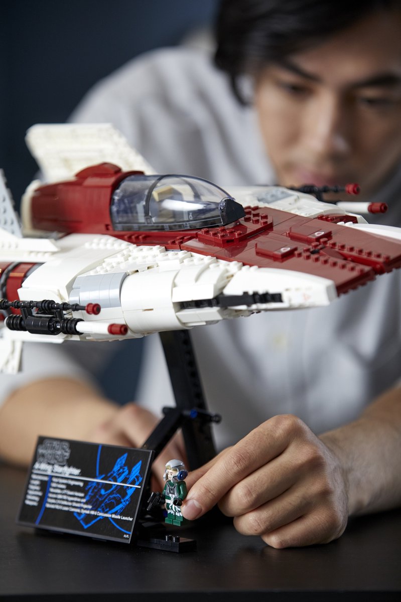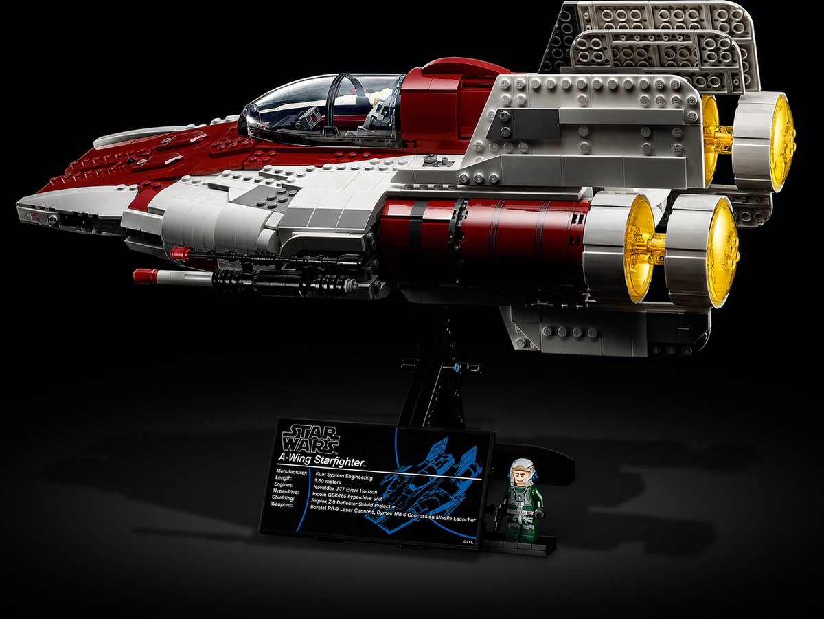 Maak de beroemde, pijlvormige A-wing Starfighter uit Star Wars: Return of the Jedi na met deze geweldige LEGO® Star Wars™ bouwset! Bekijk de draaibare laserkanonnen en de gedetailleerde cockpit met afneembare koepel. Pronk vervolgens met dit fantastische model uit de Ultimate Collector Series bij vrienden en familie: plaats het op de verstelbare standaard met informatieplaatje en de minifiguur van een A-wing piloot.